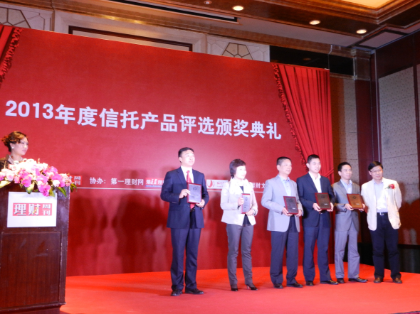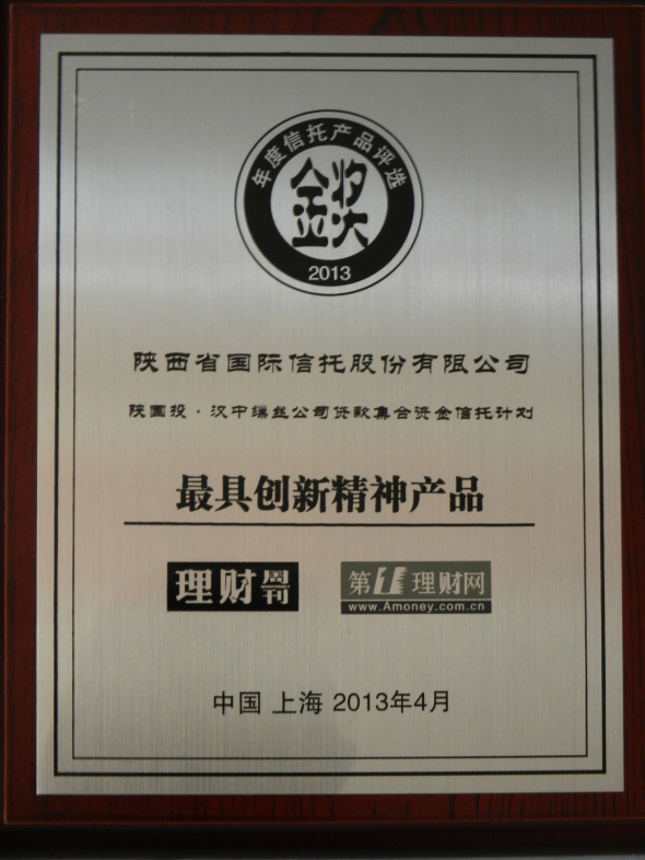 由國(guó)內(nèi)權(quán)威理財(cái)媒體《理財(cái)周刊》、《第一理財(cái)網(wǎng)》主辦的“2013年度信托產(chǎn)品評(píng)選頒獎(jiǎng)典禮暨2012年度理財(cái)產(chǎn)品分析報(bào)告”最近在上海隆重舉行。我公司發(fā)行的“漢中繅絲公司集合資金信托計(jì)劃”作為創(chuàng)造性的扶持當(dāng)?shù)剞r(nóng)業(yè)小微企業(yè)的典型代表,在此次“2013年度信托產(chǎn)品評(píng)選”活動(dòng)中榮獲“最具創(chuàng)新精神產(chǎn)品金獎(jiǎng)”。