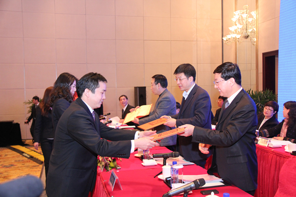 與會領(lǐng)導(dǎo)向先進(jìn)集體頒獎