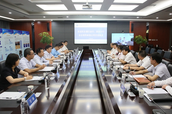 民生銀行總行資產(chǎn)托管部總經(jīng)理張慶、西安分行行長薛文才、副行長齊國華一行來我公司業(yè)務(wù)交流,公司總裁姚衛(wèi)東、業(yè)務(wù)總監(jiān)黃琨、市場總監(jiān)王瓊及相關(guān)部門負(fù)責(zé)人參加了會議。