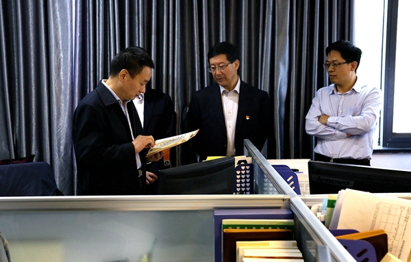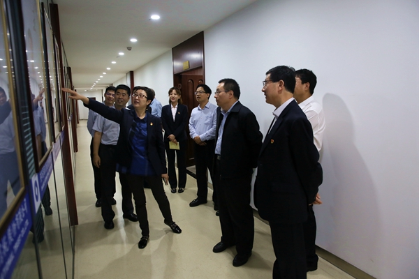 楊政國(guó)一行在公司領(lǐng)導(dǎo)陪同下參觀了公司發(fā)展和黨建工作展板,聽取了公司近年來經(jīng)營(yíng)發(fā)展情況介紹。隨后,深入證券運(yùn)營(yíng)管理部、財(cái)富管理總部,了解證券交易和估值業(yè)務(wù)、信托知識(shí)和產(chǎn)品銷售情況。還深入三樓文化宣傳區(qū)和后臺(tái)辦公區(qū),了解公司機(jī)關(guān)建設(shè)、文化標(biāo)識(shí)和黨建宣傳等工作。最后召開座談會(huì),聽取了公司黨委和紀(jì)委工作匯報(bào),與公司領(lǐng)導(dǎo)班子成員進(jìn)行交流。
