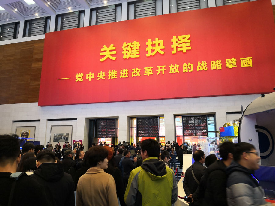 偉大的變革——慶祝改革開放40周年大型展覽”分為“偉大的變革、壯美篇章、關(guān)鍵抉擇、歷史巨變、大國氣象、面向未來”六個(gè)展區(qū),展覽以改革開放40年光輝歷程為主線,聚焦改革開放以來的重大時(shí)間、事件節(jié)點(diǎn),集中宣傳展示改革開放和社會主義現(xiàn)代化建設(shè)取得的重大成就,突出展示黨的十八大以來,以習(xí)近平同志為核心的黨中央堅(jiān)定不移高舉改革開放旗幟,推進(jìn)全面深化改革、全面擴(kuò)大開放的戰(zhàn)略決策部署。