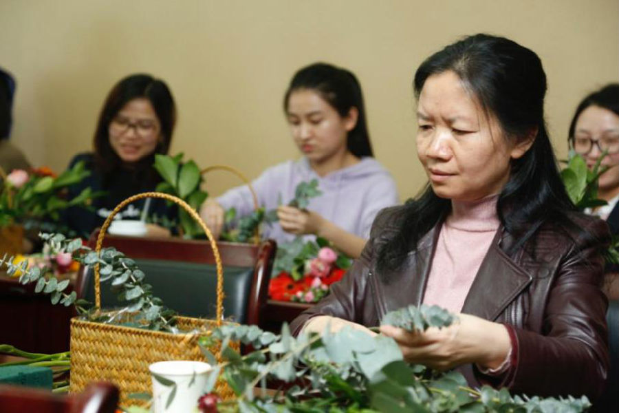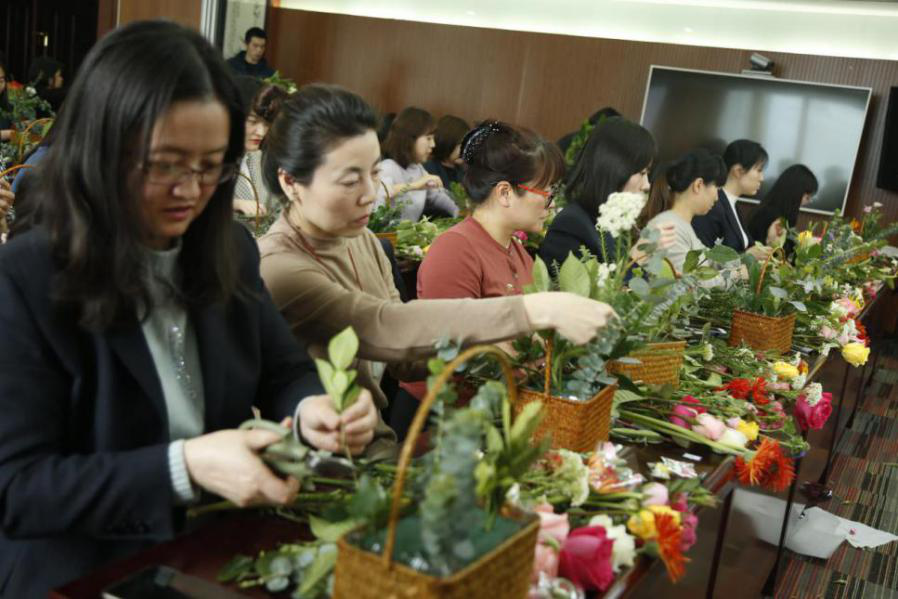 插花活動(dòng)開始,首先由花藝老師向大家詳細(xì)介紹了花意花語(yǔ)、鮮花保鮮等插花藝術(shù)方面的相關(guān)知識(shí)。接著由員工自己動(dòng)手制作花籃,大家精心構(gòu)思、大膽創(chuàng)作,色彩各異的鮮花經(jīng)過女員工們的巧手創(chuàng)作變成一只只色彩繽紛、造型各異的美麗花籃。愉快的插花環(huán)節(jié)過后,女員工們對(duì)創(chuàng)作的作品進(jìn)行了評(píng)比。這次活動(dòng),不但讓女員工們的藝術(shù)鑒賞能力有所提升,同時(shí)也陶冶了女員工們的情操,更進(jìn)一步激發(fā)了女員工們對(duì)美好生活的向往。