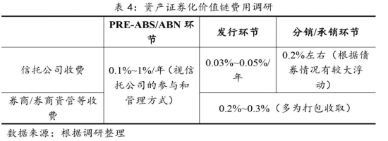 未來,信托公司將擺脫單純SPV角色,盡快構建業(yè)務能力,提高業(yè)務主導性,拓展“發(fā)行+分銷”打包服務,資產證券化業(yè)務將逐步提升對信托公司的收入貢獻。從資產證券化價值鏈來看,信托公司開展Pre-ABS/ABN業(yè)務帶有較大的機會性,但分銷環(huán)節(jié)的積極參與已成為各家的重要發(fā)力點,實行“發(fā)行+分銷”打包將成為業(yè)務趨勢。一方面,通過實施“發(fā)行+分銷”打包,整體報酬率將達到千二以上,資產證券化業(yè)務將獲得更好的收入貢獻。另一方面,報酬率的提高有利于提高業(yè)務人員展業(yè)積極性,有利于吸引外部成熟人才,并進一步提高信托公司開展資產證券化業(yè)務的能力和競爭優(yōu)勢。據(jù)調研,券商/券商資管等開展資產證券化業(yè)務,多采取“發(fā)行+承銷”打包的服務方式,合計收費在千二到千三左右,同時券商/券商資管等往往采取前端一次性收費的方式,相比之下信托公司發(fā)行環(huán)節(jié)按年收費和分銷環(huán)節(jié)一次性收費則可實現(xiàn)更高收入,因此在實施市場化考核的情況下,信托公司資產證券化業(yè)務人員展業(yè)積極性將有所提高,對外部成熟人才的吸引力也將增強,信托公司資產證券化業(yè)務的競爭優(yōu)勢將進一步凸顯。