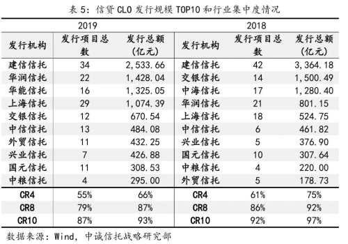 從2019年情況來看,信托公司資產證券化業(yè)務市場競爭更加激烈。一是更多信托公司參與資產證券化業(yè)務。信貸CLO方面,參與公司由2018年的16家增至2019年的23家;ABN方面,參與公司由2018年的25家增至2019年的35家。