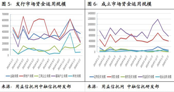 相較于基礎(chǔ)產(chǎn)業(yè)類信托,金融類信托受到疫情影響相對較小,其主要投向的信托、消費金融等領(lǐng)域?qū)τ谛磐泄径哉箻I(yè)更加容易判斷,更易通過遠程化、電子化進行開展,因此在2月取得一定增長也是市場合理選擇后的結(jié)果。
