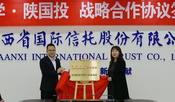 簽約儀式后,雙方共同為陜國投西北大學(xué)聯(lián)合培養(yǎng)博士后流動站揭牌,并舉行了西北大學(xué)經(jīng)濟管理學(xué)院學(xué)生實習(xí)實踐教育基地、西北大學(xué)經(jīng)濟管理學(xué)院大學(xué)生勞動教育基地、陜國投教育培訓(xùn)基地授牌儀式。