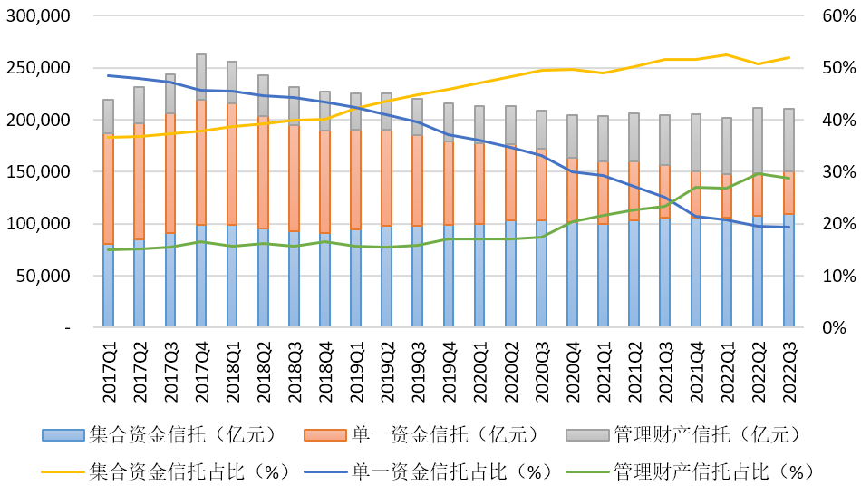 圖2 信托資產(chǎn)按來源分類的規(guī)模及占比