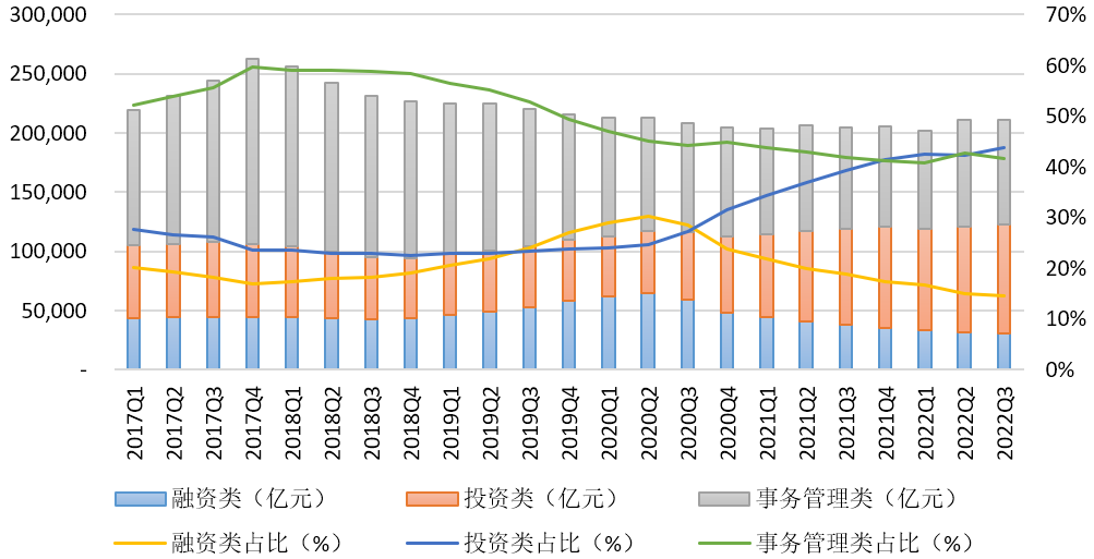 圖3 信托資產(chǎn)按功能分類的規(guī)模及占比